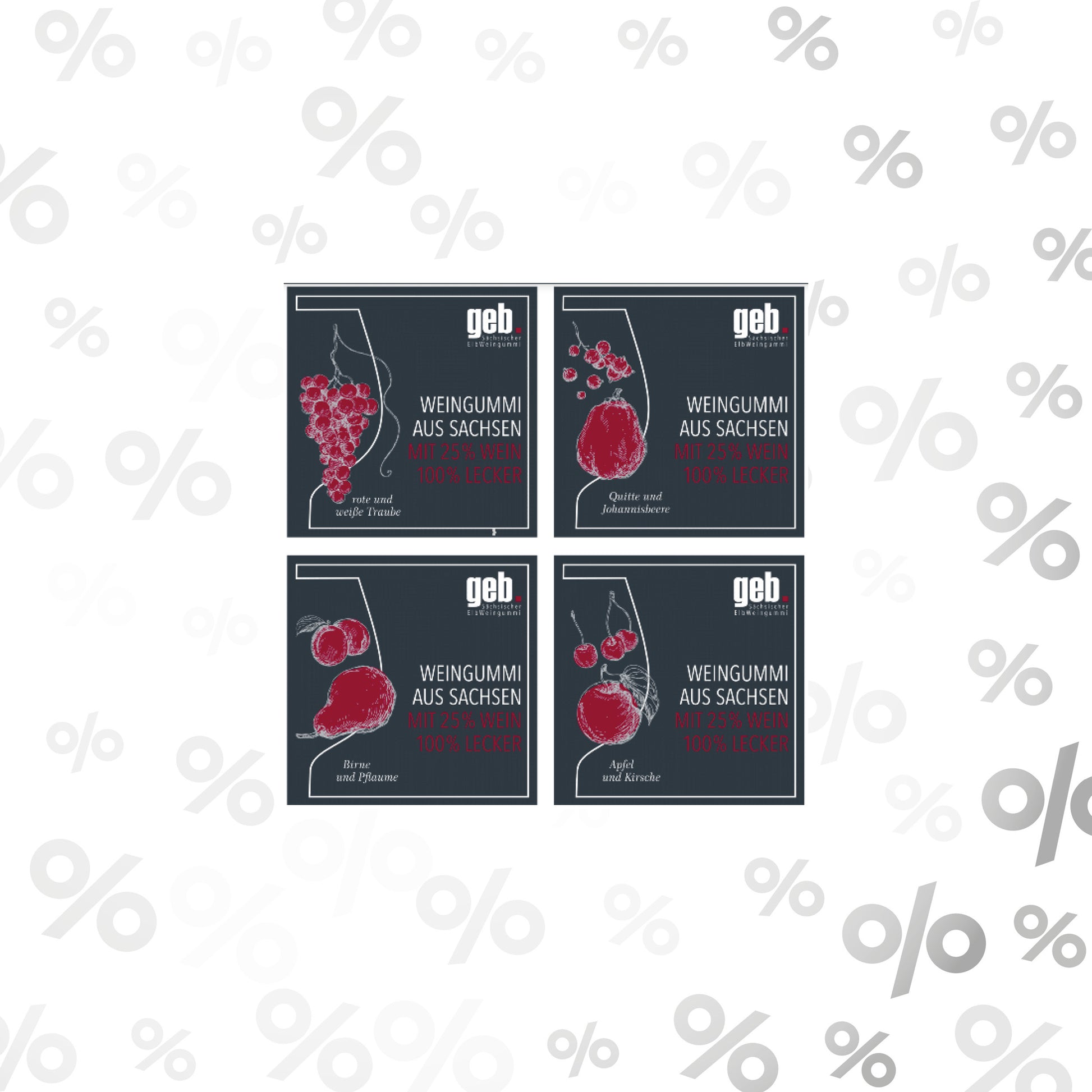 Weingummi aus Sachsen mit 25% Wein in vier edlen 200g-Schachteln.